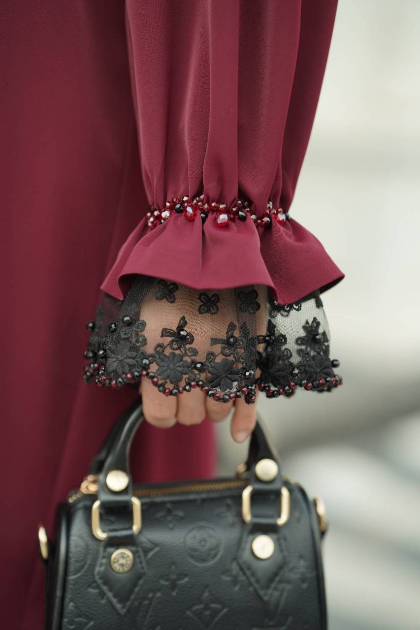 ✦ تزئین شده با جواهردوزی و تور در قسمت مچ